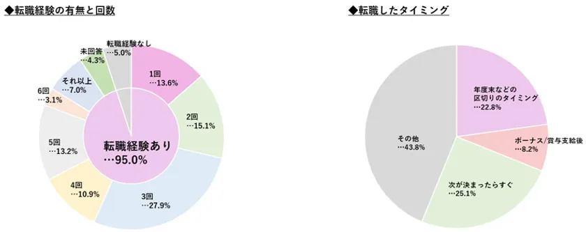 ・転職経験ありの回答は95%となり、7回以上転職したという回答もあるなど、人材の流動性が高い職種であることが改めて分かります。