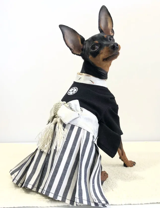 袴風ペットウェア(ブラック)着用
