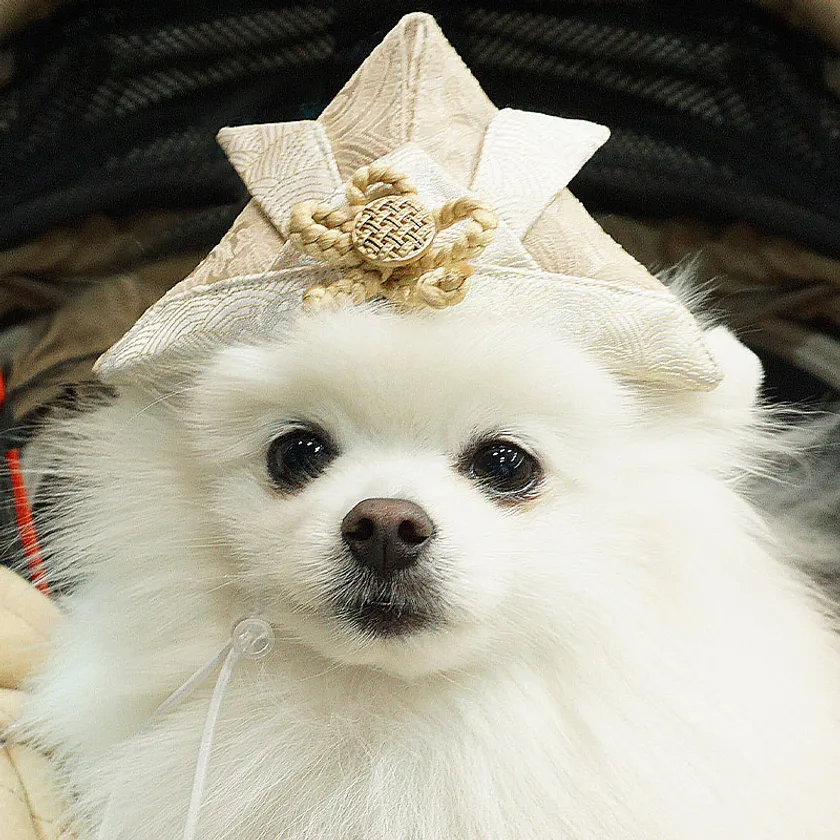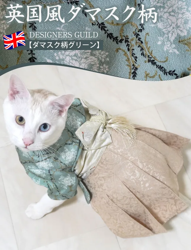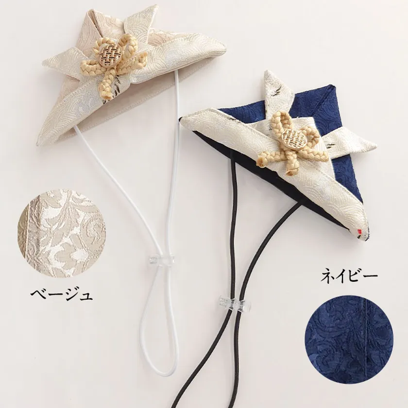 袴風ペットウェアと同じ、高級感のあるジャガード風生地を使用し、袴とセットで着用すれば写真映えすること間違いなしのアイテムです。サイズ調整ができるゴム紐付きで、動き回わる子でも簡単に着用できます。