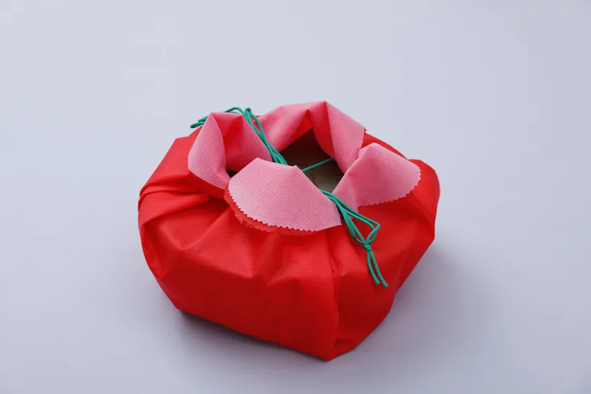 「ミラノ」Bセットは、奈良生まれのおしゃれな不織布ラッピング「大和Furoshiki花しょうぶ」でお包みいたします。日本の伝統文化「風呂敷」と「巾着袋」の特長を取り入れて開発された袋で、カーネーションを思わせる赤・ピンク2色のカラーリング。文字通り、贈り物に「花」を添える素敵なラッピングです。