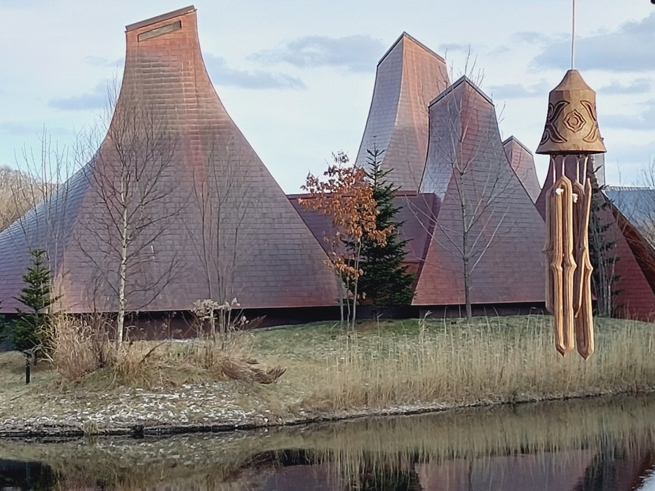 木彫り工芸の技が光る風鈴。ポロト湖との一体感を感じながら、軽やかな木の音色を楽しめます。