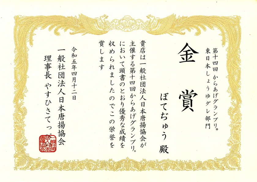 2023年は「第14回からあげグランプリ(R)東日本しょうゆダレ部門」に、ぼてぢゅう(R)の名物料理「ぼてから(R)3種しょうゆ&和風だし味」でエントリーし、金賞を受賞いたしました。