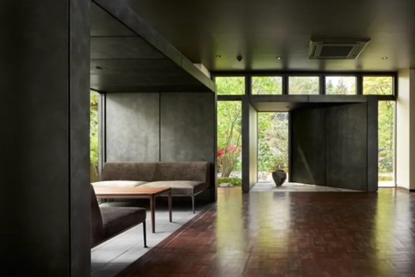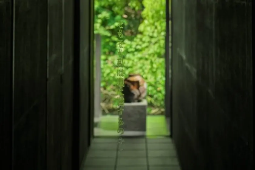 当館「すみや亀峰菴(きほうあん)」は、京都・亀岡にて1955年に創業した、露天風呂付客室と四季折々の料理が人気を誇る「湯の花温泉」を代表する旅館。2021年4月にリニューアルオープンしたロビー兼ギャラリー「百代(はくたい)」をはじめ、世界的に活躍する現代美術家・柳幸典とのコラボレーションにより大規模なリノベーションを行ってきました。