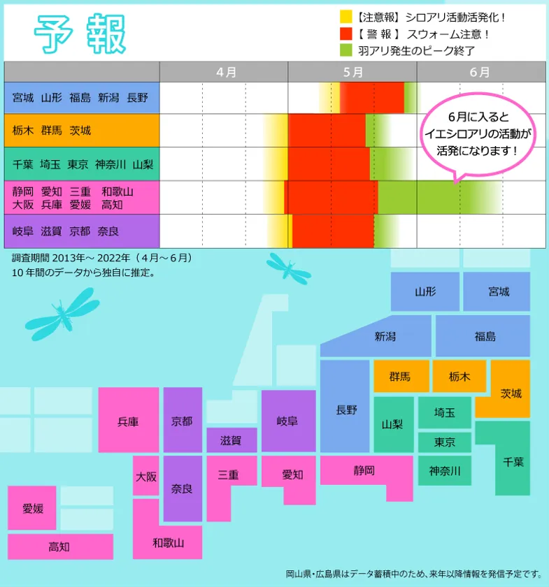※「シロアリ注意報」は2007年に当社が開始した日本初のシロアリの羽アリ発生情報をお知らせする取り組みです。