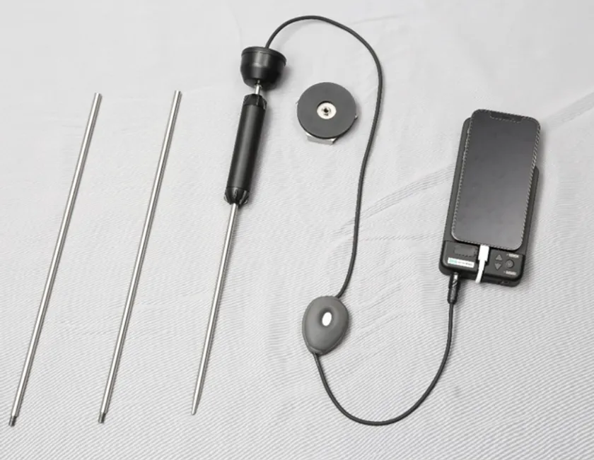 給水管の漏水箇所から伝わる振動を誰でも簡単に操作・検知する電子音調棒です。