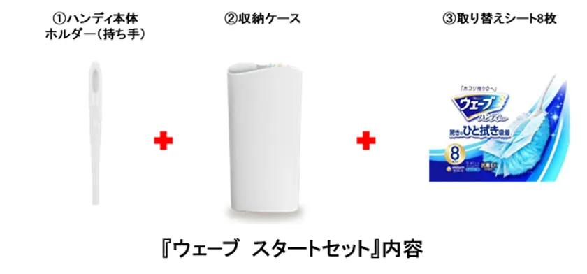 そこでこのたび、部屋の隅々まで手軽にお掃除できることで好評の『ウェーブ ハンディワイパー』から、ハンディ本体と収納ケース、取り替えシートがセットになった『ウェーブ スタートセット』を、期間限定品として全国で発売します。