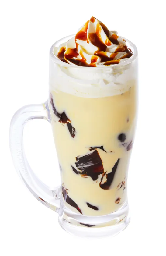 自家製コーヒージェリーにアイスコーヒーを加え、フレッシュで甘味をプラスしました。コメダならではの本格的な味わいの「元祖」。少し太めのストローで“のむ、たべる、まぜる”をお楽しみください。