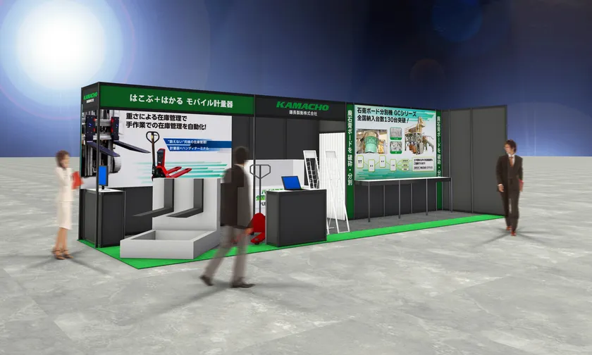 鎌長製衡、「2023NEW環境展」に出展 フォークリフト・ハンドパレットスケールを用いた 重さによる「在庫管理システム」や、 「石膏ボード分別機」などを提案