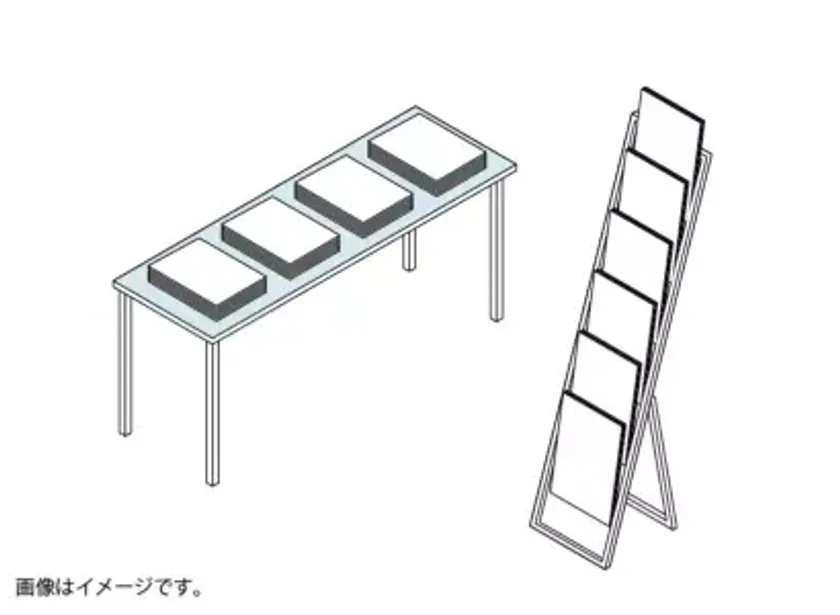 展示方法 :休憩スペースのラックやフリーの展示スペースに設置して、