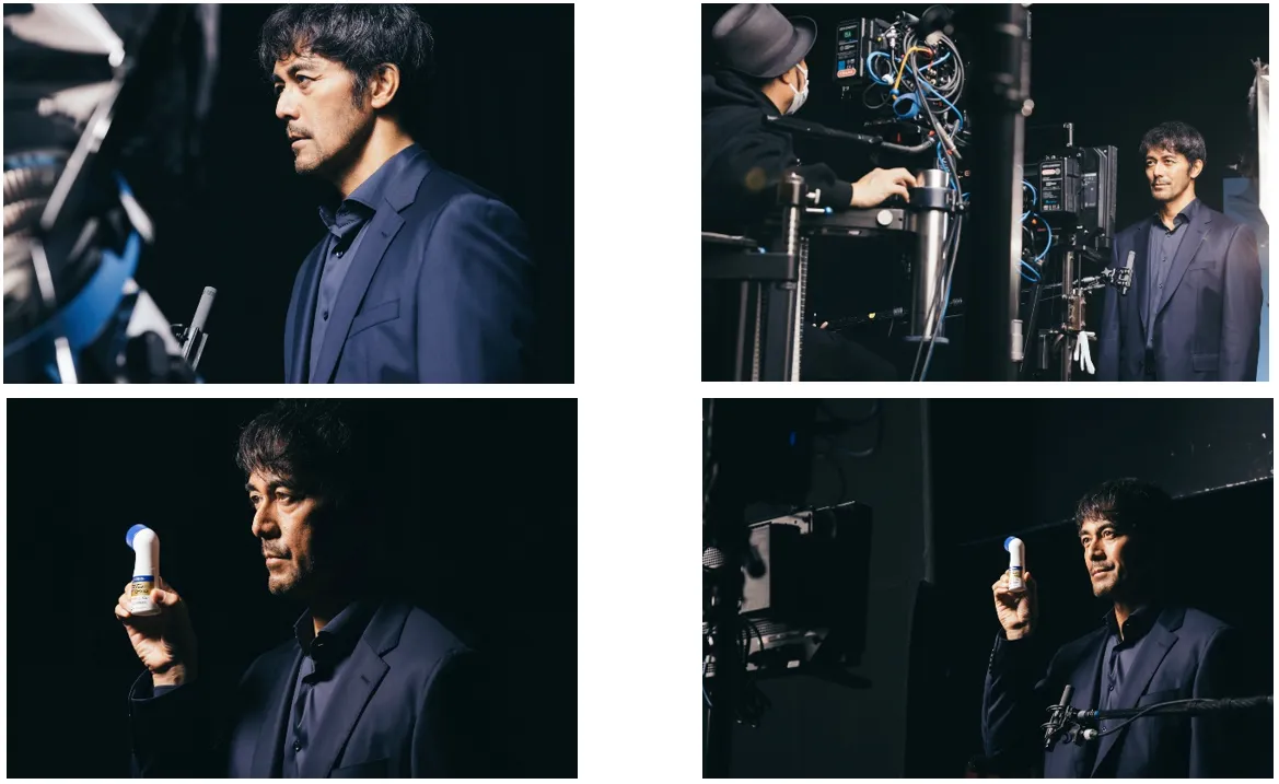 今回のTV-CM「ロキソニンEXテープ『新たなる世界』」篇、「ロキソニンEXローション『背中まで』」篇ではそれぞれ、暗闇に光が差し込み、阿部さんが浮かび上がるように登場。セリフは「おぉ~」「ふぅ~」といった吐息のみ。深く響く吐息と演技を通して、製品を使用した時の、じんわり染み渡るような使い心地と快感を伝えます。シンプルなセットの中で、阿部さんの声や目力、大きな存在感がより際立ち説得力のある映像に仕上がりました。