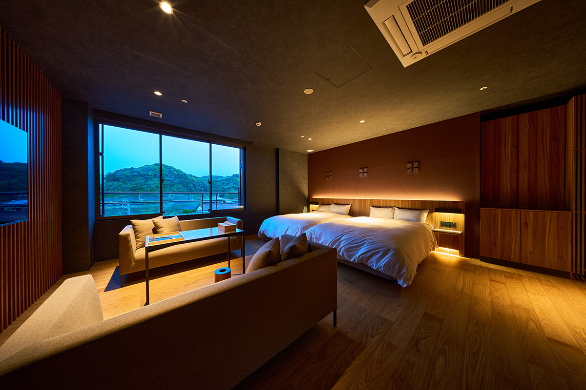 また、広々としたこだわりの客室になっている為カップルはもちろん、ご家族みなさまでも広い空間でゆっくりとした滞在をお楽しみいただけます。