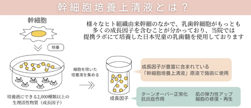 当クリニックでは、ヒト乳歯幹細胞培養上清液を用いた美容医療の可能性を積極的に追求しています。