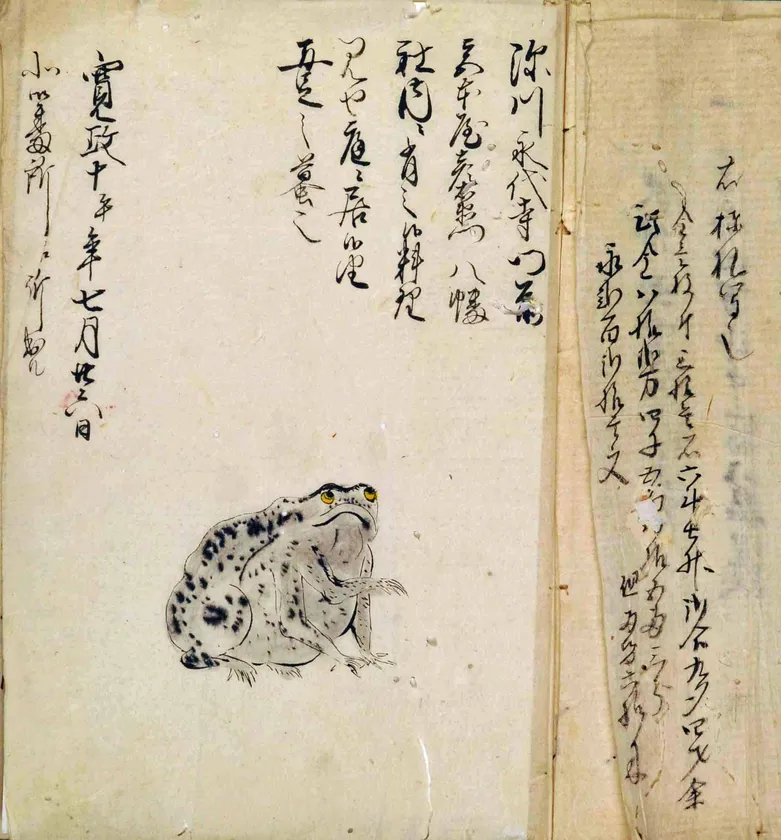 新宿の馬宿の子として生まれ、14歳でたばこ屋を開業しました。文芸をよくし、平賀源内をはじめとする多数の文化人と交友を持ちました。南畝とは内山賀邸(がてい:南畝の師匠)のもとで出会い、南畝の出世作『寝惚先生文集』を刊行へと繋げたのも東作でした。以降も交友は続き、同座した作品も残されています。文芸面以外では、浄土真宗の異端の一派に潜入したり、蝦夷地探索に出たりと一風変わった経歴を持ち、その際の見聞録も残しています。
