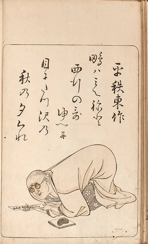 蔦屋重三郎から出された狂歌集。北尾政演(戯作者の山東京伝の絵師としての名)による挿絵で、すでに晩年に差し掛かっていた東作の姿が描かれている。
