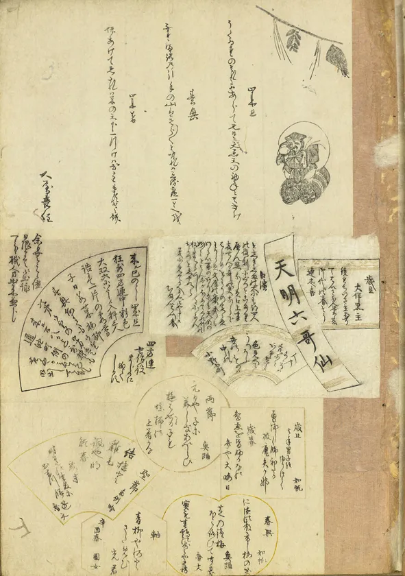 どんな紙片もなくさない、という表題の通り、狂歌会や芝居関係のチラシ類まで、南畝の身近にあった紙片を貼り込んだもの。