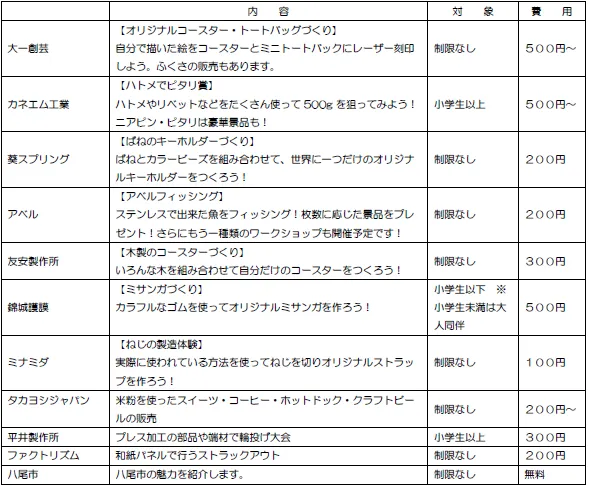 4.出店者など 大一創芸/カネエム工業/葵スプリング/アベル/友安製作所/