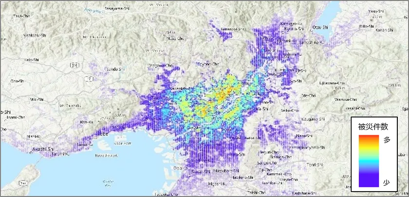 <大阪府北部地震の被災件数を可視化したイメージ>