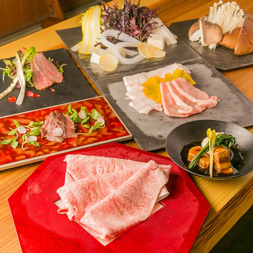 お料理は、松阪牛、特選豚しゃぶしゃぶコースになりますが、お肉が苦手なお客様や、菜食主義、宗教上指定した食材以外召し上がれないお客様は、特別コースをご用意いたします。