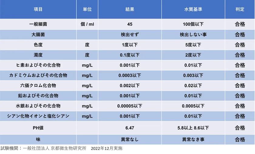 ・水道水質検査51項目とミネラルウォーター水質検査47項目の両方の水質検査基準をクリア