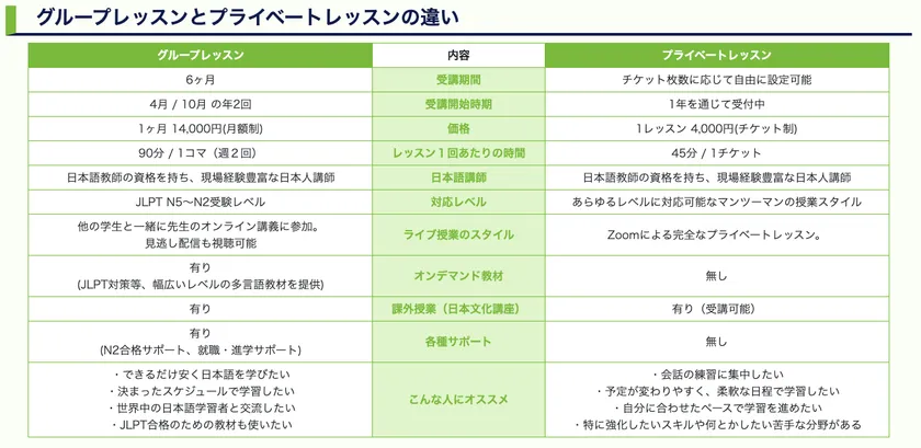 ・日本語プライベートレッスンの特徴