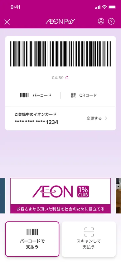 ※2:「AEON Pay」はイオンのトータルアプリ「iAEON(アイイオン)」またはイオンカード公式アプリ「イオンウォレット」をダウンロードいただき、イオンマークのカードを登録することで利用可能となります。イオンのグループ店舗をはじめとした全国のAEON Pay加盟店のレジにて、スマートフォンに表示されたコードを提示することで、簡単に決済することができます。