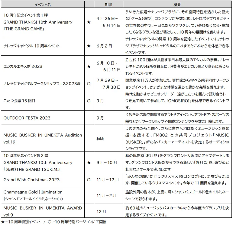 グランフロント大阪ではまちびらき10周年を記念して、さまざまなイベントを予定しています。