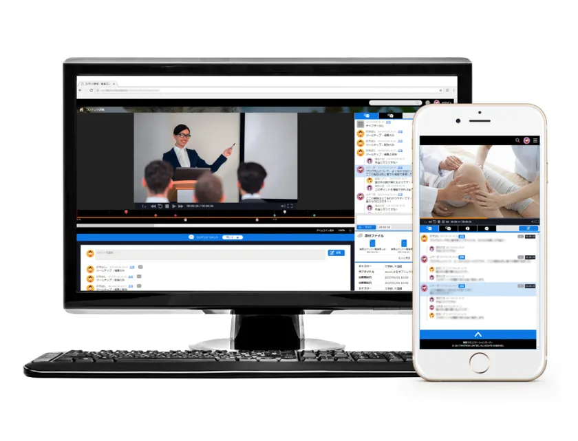 動画へのコメント/評価の書き込みや共有・分析が可能な動画配信システム。マルチデバイス対応のオンデマンド/ライブ配信やアクセス制御、視聴分析といった基本機能に加え、ZoomやLMS(学習管理システム)などの外部システムとの連携など、動画配信システムに欠かせない機能を搭載。