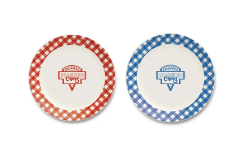 【マリオンクレープ 磁器プレート(赤・青) 各1,650円(税込)】