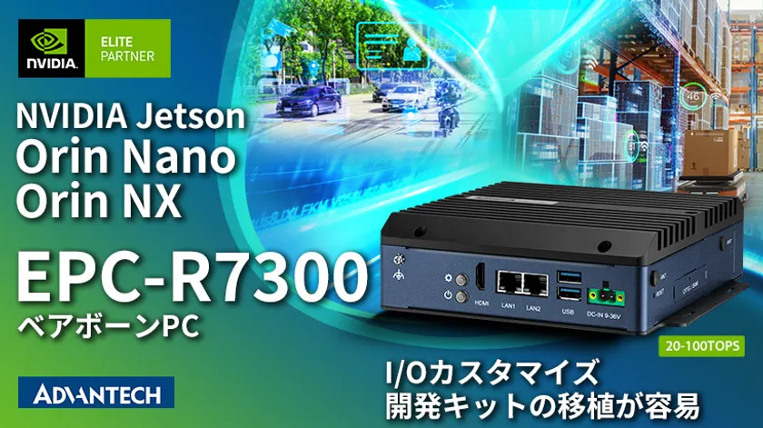 アドバンテック株式会社(本社:東京、代表:KC Liu、以下 アドバンテック)は、NVIDIA Jetson Orin(TM) NXおよびJetson Orin Nanoシステムオンモジュール向けの産業用ベアボーンPC「EPC-R7300」を発売します。強力なNVIDIA Jetson Orinモジュールを活用することで、EPC-R7300は、より低消費電力(7~25ワット)で20~100 TOPSのAI性能を実現できます。