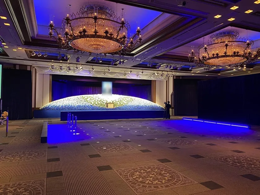 yukariでは、過去2,000件の社内イベント実績を元に、社葬・お別れの会を開催する企業に合わせた多様な演出を実現。イベント会社の特徴を活かし、生演奏によるBGM、照明演出を施した祭壇など、葬儀社や花卉小売業社とは異なる宗教儀礼にとらわれない演出が可能です。