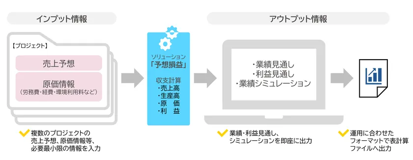 当社が提供する「予想損益」は、必要最小限のインプット情報から想定される業績や利益の大枠の見通しを把握することができるツールです。