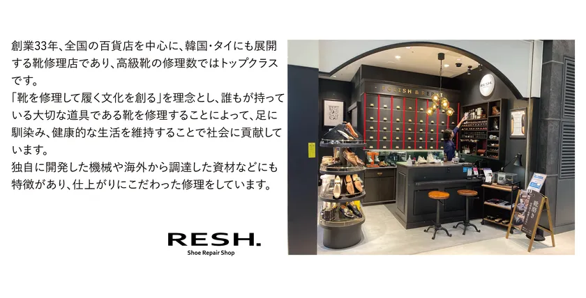 RESH.は、靴の修理を行う専門店として、丁寧な仕上がりとスピーディーな対応で顧客のニーズにお応えしてまいりました。