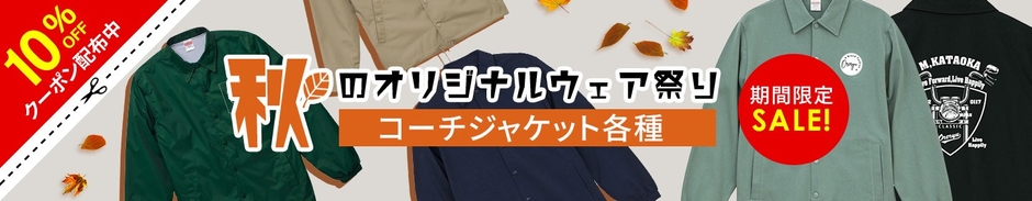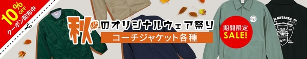 株式会社太陽(所在地:千葉県匝瑳市飯倉台28-11、代表取締役:片岡正徳)が展開する「おもしろTシャツの俺流総本家」では、写真や名入れなどのオリジナルデザインを自由に作成できる「俺流デザイナー」シリーズから、オリジナルコーチジャケット3種の期間限定セールを開催いたします。