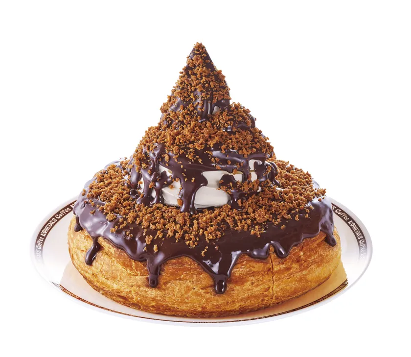 あたたかいココアバウムクーヘンとソフトクリームにチョコレートソースを合わせ、ザクザククランチをたっぷりトッピングしました。ふんわり広がるココアの上品な味わいと、チョコレートソースは相性が良く、ソフトクリームとの調和もお楽しみいただけます。ソフトクリームの上で固まるチョコレートのパリッと感、クランチのザクザク感、2種類の食感が楽しめる今だけのクロネージュです。