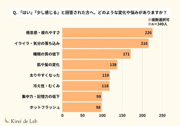 「イライラ・気分の落ち込み」「睡眠の質の低下」「肌や髪の変化」が続きました。