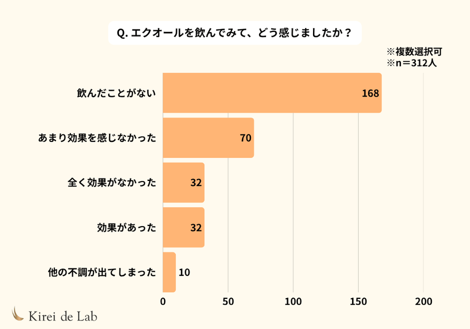 Q.「エクオールを飲んでみて、どう感じましたか?」