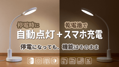 デスクライトは、停電を検知すると自動的に点灯するため、夜間の緊急時に迅速な避難に役立ちます。また、明るさセンサーが搭載され、暗い場所でのみ作動することによって、不必要な電池消費を抑えるようになっています。