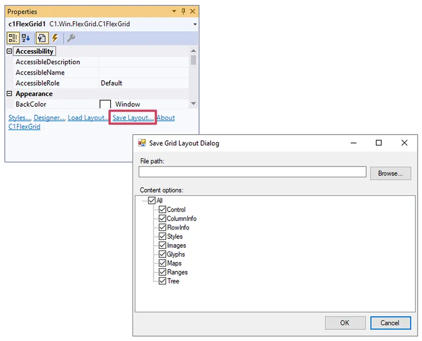 レイアウトの保存と読み込み(FlexGrid for WinForms)