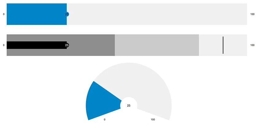 .NET6 用コンポーネントとして新たにGaugesコントロールを追加しました。.NET 6対応版ではよりシンプルでクリーンなデザインを採用しています。水平および垂直ゲージ、曲線ゲージ、ブレットグラフを生成することができます。