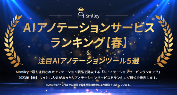 AIsmileyで最も注目されたサービスを発表する「アノテーションランキング」です。こちらのランキングは、2023年1月~3月までの期間で編集部独自調査により順位を決定したものです。