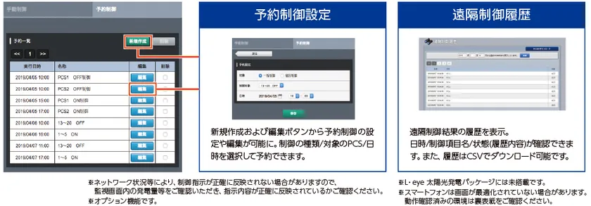 太陽光発電の安定稼働を支える遠隔監視システムは、発電停止のリスクを伴う出力制御においても必要不可欠。各地で出力制御が本格化する今こそ、高機能監視を取り入れた万全の出力制御対策が重要です。遠隔監視システム&サービス L・eyeは、追加機器不要で出力制御に標準対応。無制限無補償ルールと新ルール・旧ルールすべてに対応し、現場に行くことなく監視画面上での遠隔操作で事前の予約制御設定も可能です。