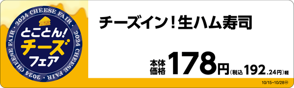 ミニストップは、2024年10月15日(火)より、「チーズフェア」を実施します。お子さまから大人のお客さままで、幅広い世代に人気の「チーズ」を使用した商品を集めたフェアを実施します。寿司、弁当、パスタ、菓子パン、スイーツ、惣菜等、「チーズ」が主役の幅広い商品をご用意しております。