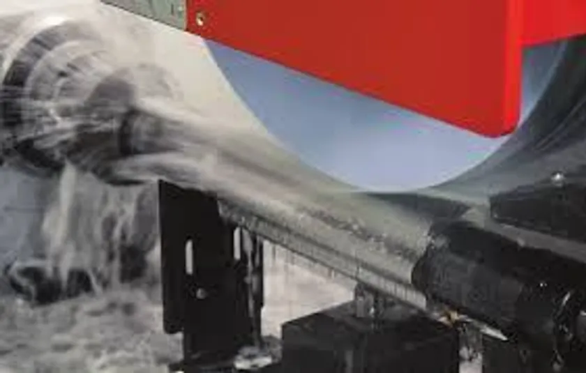 クリープフィード研削で必要な材料除去量を得るため、砥石の目詰まりを防止しながら摩擦力を抑えて研削効率を確保するために、研削クーラントは50barの高圧噴射をしつつ、クーラントのジェット噴射を砥石の研削場所にピンポイントに狙い撃ちするための、ノズル追従システムを搭載。それにより、特にクリープフィード研削盤で必要な深い切込みを与えた場合でも、焼けやビビりを発生させず安定した研削を実現しています。