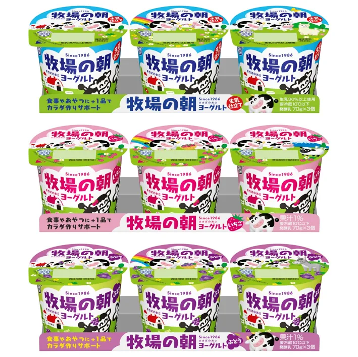 『牧場の朝ヨーグルト』は、1986年以来、お子様から大人まで幅広い年齢層に支持されているロングセラー商品です。2020年から、商品パッケージに使用している台紙を利用して、切り紙あそびが出来るデザインを展開しています。
