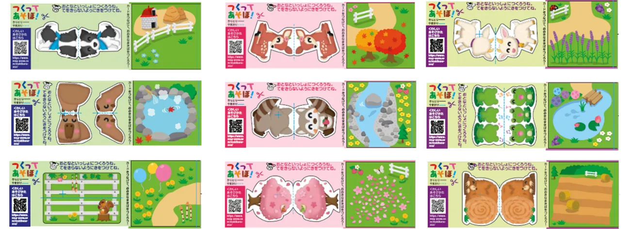 切り紙あそびは、「つくってあそぼ!」と題して、小さなお子様がいらっしゃるご家族を中心に、オリジナルの牧場づくりをお楽しみいただき、ご好評をいただいています。