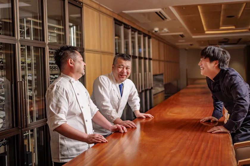 京都、日本を代表するトップシェフの山岸隆博氏、山口正氏とPLEIN代表の中尾太一の親交から共同運営の形で饗宴が誕生しました。