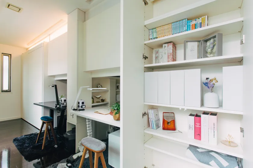 リビングに「自在間仕込収納」でつくった書斎