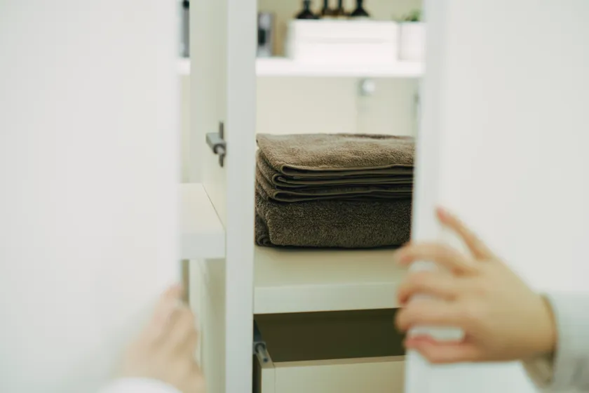 このほかにも脱衣スペースと廊下の間に間仕込を設置することで、バルコニーで取り込んだ洗濯物を廊下側から収納すれば、わざわざ脱衣スペースに行く必要がなくなり、2つの空間が「通う」ことで生まれる効率的な生活動線は、小さなゆとりの時間を日々生み出し、永く暮らす中でやがて大きな幸せにかわることとなります。