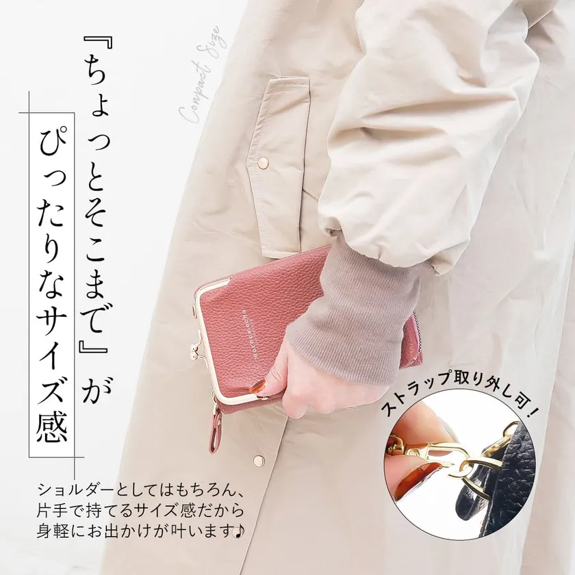 スマホも収納取り出し簡単のがま口タイプ