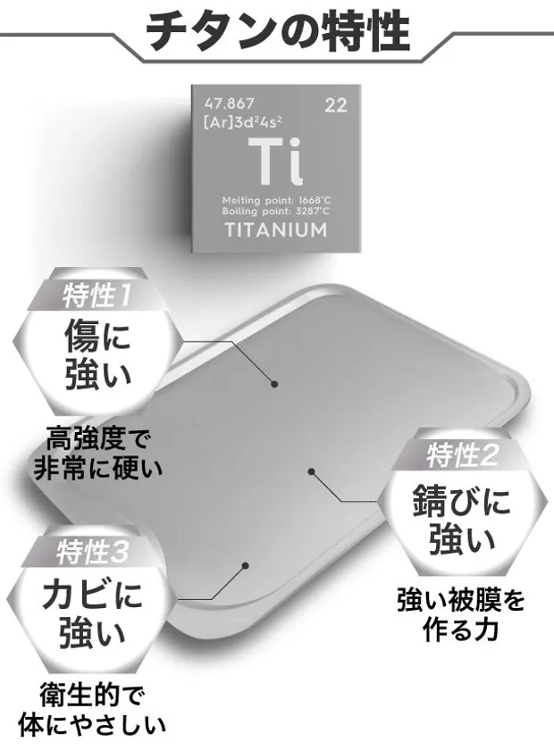 Tifungの「純チタン製まな板」には純チタンを99.9%使用しています!